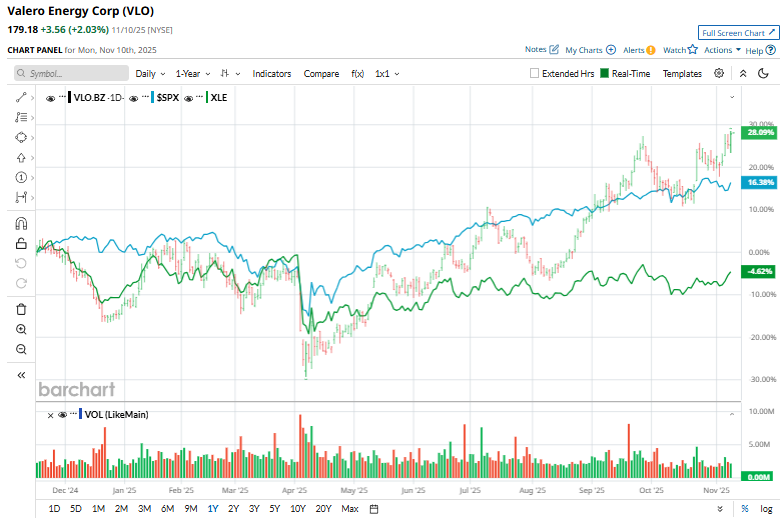 Looking closer, shares of Valero Energy have outpaced the Energy Select Sector SPDR Fund's (XLE) 3.6% dip over the past 52 weeks and 5.5% rally in 2025.