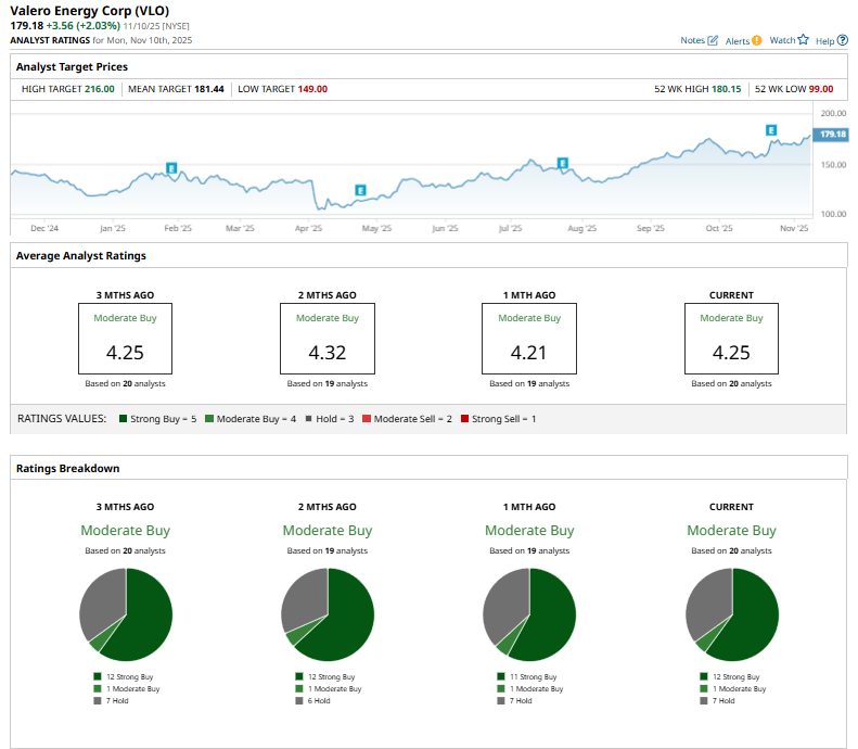 On Oct. 8, Barclays plc (BCS) analyst Theresa Chen reaffirmed her “Buy” rating on Valero Energy and set a price target of $169.